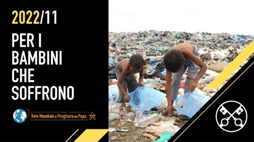 „Az elhagyott gyermek a mi hibánk” – mondja Ferenc pápa a videóban, melyben bejelenti novemberi imaszándékát. Arra szólítja fel a katolikusokat, hogy imádkozzanak azokért a gyermekekért, akik az elutasítás, a nyomorúság, a szegénység és a konfliktusok miatt szenvednek világszerte. „Még mindig kisfiúk és kislányok milliói szenvednek és élnek a rabszolgasághoz nagyon hasonló körülmények között” – mondja a pápa. Hangsúlyozza, hogy ezek a gyerekek „nem számok, hanem emberek, akiknek nevük és identitásuk van, amit Isten adott nekik.” „Minden peremre szorult gyermek, aki iskoláztatás, család és egészségügyi ellátás nélkül él, egy »kiáltás«, amely felemelkedik Istenhez, és megszégyeníti azt a rendszert, amelyet mi, felnőttek építettünk.”