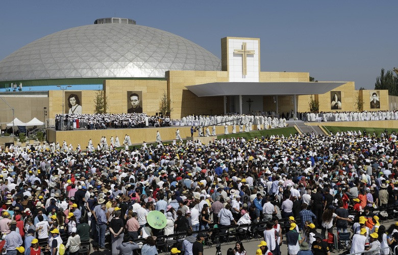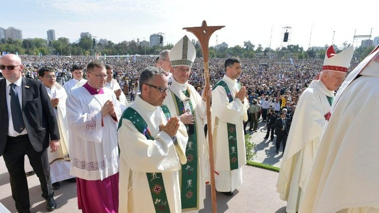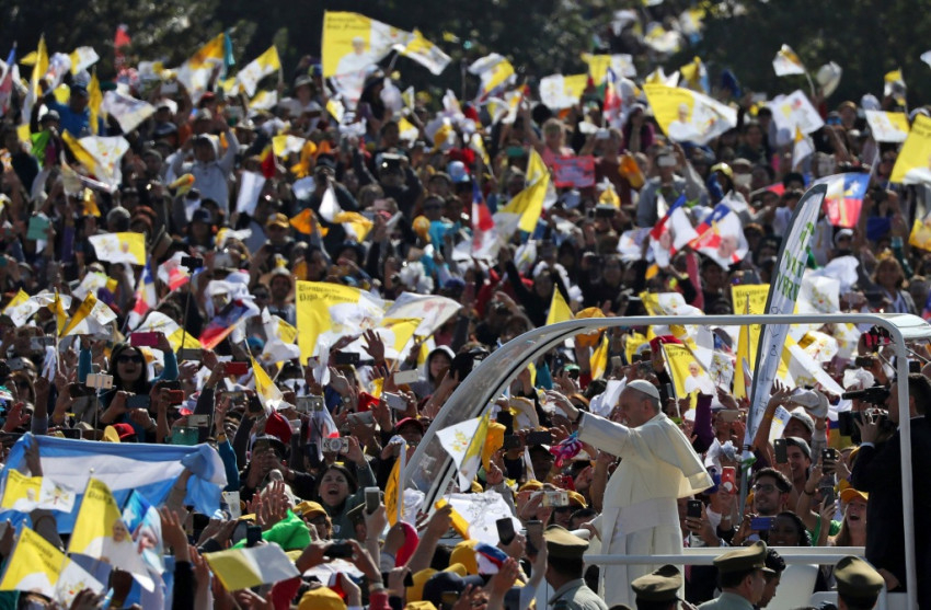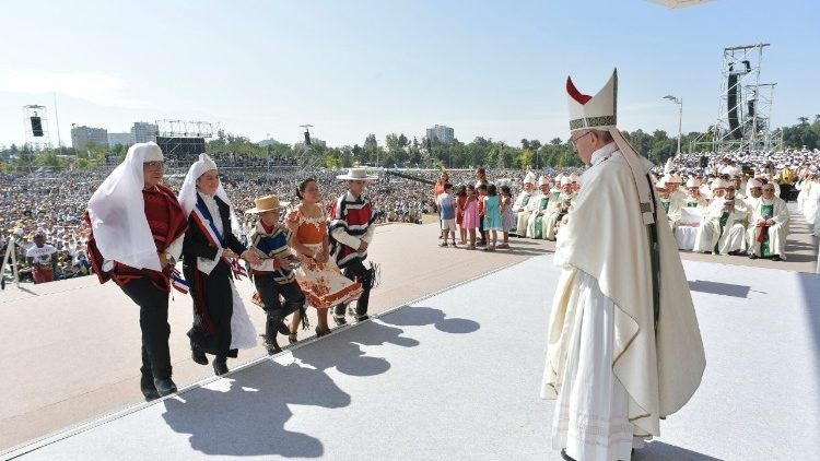 Milyen jót tesz nekünk, ha arra gondolunk, hogy Jézus a Cerro Renca [a hegy] vagy a Puntilla [a tengerpart] felől közeledik hozzánk, és azt mondja: „Boldogok…” Igen, boldog vagy te és te [rájuk mutat], mindegyikünk. Boldogok vagytok, akik engeditek, hogy megfertőzzön titeket Isten Lelke, és akik ezért az új napért, ezért az új Chiléért küzdötök és dolgoztok, mert tietek lesz a mennyek országa. „Boldogok, akik békét teremtenek, mert Isten fiainak hívják majd őket” (Mt 5,9).