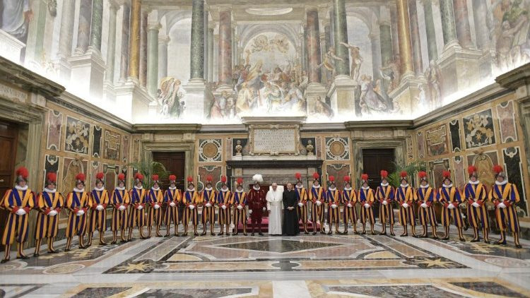 Erősnek kell lenni az üdvözítő Krisztusban való hit által, mert a Szentszék szolgálatában álló személyektől az emberek teljes odaadottságot és életszentséget várnak el. Etikai és spirituális elveitek olyan értékeken nyugszanak, mint a párbeszéd, a becsületesség, a kiegyensúlyozott kapcsolatok és a megértés. Ennek jegyében lehet egészséges barátságokat építeni, a másik emberben pedig a testvért és a társat felfedezni – zárta a Svájci Gárda tagjaihoz intézett beszédét Ferenc pápa.