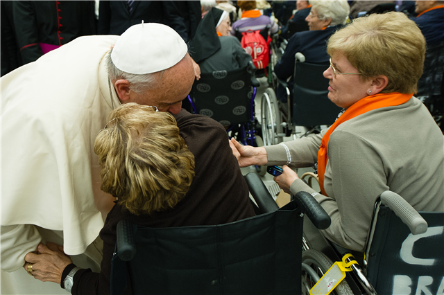 Végül Ferenc pápa azt kérte a két szervezet önkénteseitől és a betegektől, hogy keresztjüket és szenvedéseiket hittel és szeretettel éljék meg Krisztussal együtt. Majd áldása előtt mindenkit arra hívott, hogy imádkozzanak Szűz Máriához. Ő ismeri a szenvedést, és mindig segít a legnehezebb pillanatokban.