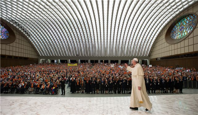 Ezzel a karizmával ajándék vagytok az egyház számára – hangsúlyozta a Szentatya. Szenvedésetek, ahogy Jézusé is, botrány a hit számára, de másrészt a hit bizonyítéka, jel, hogy Isten a szeretet, aki hűséges, titokzatos és vigasztaló. A feltámadt Krisztussal egyesülve „az üdvösség és az evangelizáció műve tevékeny és felelős alanyai” (Christifideles laici, 54) vagytok. Arra buzdította őket, hogy álljanak a plébániáik szenvedői mellett, mint a Feltámadás tanúságtevői. Így gazdagítjátok az egyházat és együttműködtök a lelkipásztorok küldetésével, imádkozva és felajánlva szenvedéseteket értük.
