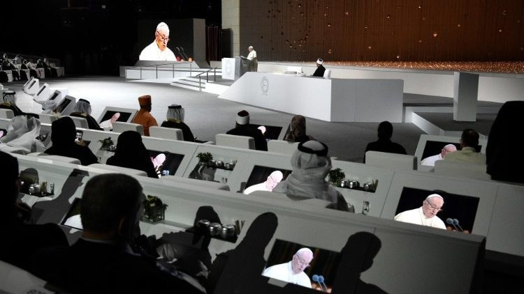 Ebben az összefüggésben szeretném kifejezni örömömet, hogy éppen itt, Abu-Dzabiban rendezték meg tavaly novemberben a biztonságosabb közösségek érdekében létrehozott vallásközi szövetség első fórumát a gyermekek méltóságáról a digitális korban. Ez az esemény befogadta az egy évvel korábban ugyanerről a témáról Rómában tartott nemzetközi kongresszus üzenetét, amely kongresszust teljes mértékben támogattam és bátorítottam. Köszönetet mondok tehát az összes vezetőnek, akik elkötelezetten dolgoznak ezen a területen, és biztosítom őket, hogy én is és a Katolikus Egyház is szolidárisan követi és tevékeny részvétellel támogatja a kiskorúak védelmének ezt a roppant fontos ügyét, a védelem összes dimenziójában.