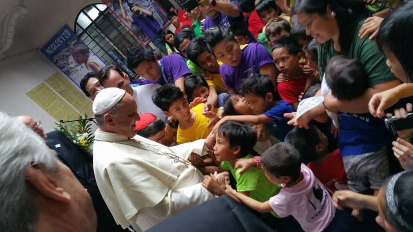 A pápa péntek délelőtt a manilai székesegyházban mutatott be szentmisét a püspökökkel, papokkal és szerzetesekkel. A szertartást követően azonnal felkereste ezeket a fiatalokat egy húszperces látogatás keretében. Rövid beszédek hangzottak el, és énekléssel kísérve zajlott a találkozó. Ferenc pápa megölelte a gyermekeket, fotók készültek, kis ajándékok cseréjére került sor.
