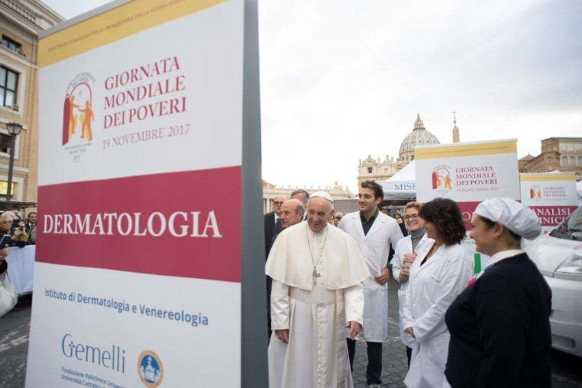 A szegények első világnapjához kapcsolódva november 13-ától 19-éig reggel 9 és délután 16 óra között a Szent Péter térhez közeli XII. Piusz téren ingyenes orvosi ellátást biztosítanak a rászorulóknak: laborvizsgálaton, kardiológiai, dermatológiai, epidemiológiai, nőgyógyászati és andrológiai szakorvosi vizsgálatokon vehetnek részt. Számos orvosi intézmény nagyvonalú felajánlásának köszönhetően vált valóra ez a kezdeményezés. Az olasz Vöröskereszt öt lakókocsit bocsátott rendelkezésre az orvosi kivizsgálásokhoz. A terület biztosításában közreműködik az olasz hadsereg és az olasz Kegyes Cselekedetek Nemzeti Konföderációja.