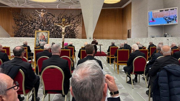 A Biblia úgy írja le az ember történetét, mint az örök élet ígérete és a halál valósága közti feszültséget – hangzott el a kedd délelőtti elmélkedésben. Izrael hűségével és hűtlenségeivel megtestesíti ezt a harcot, örökké az ígéret földjét keresve. Szent Pál halálra váltként beszél az emberről (vö. 2Kor 6,9), létének ellentmondását fejezi ki. A próféták közül Ezékiel ezt az állapotot a kiszáradt csontok völgyével ábrázolja (Ez 37). Izrael olyan, mint egy szabad ég alatti temető, élettelen és reményvesztett. Isten megparancsolja a prófétának, hogy beszéljen a csontoknak, amelyek újra összeállnak, hús kerül rájuk, de élettelenek maradnak, amíg a Lélek rájuk nem fúj. Ez a látomás nemcsak a száműzetésből való visszatérésre igaz, hanem az emberi létre is:
