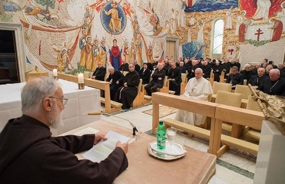 A Redemptoris Mater-kápolnában tartott prédikáción – melyen részt vett Ferenc pápa is – a szónok folytatta a Szentlélek üdvösségtörténeti szerepéről szóló sorozatát. Bevezetőjében kiemelte, hogy a mostani téma meghaladja napjaink elsőrendű kategóriáit, melyeket az aktuális, a sürgős, a fontos jelzőkkel illetünk.