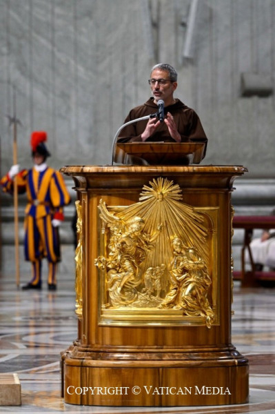 Olyan világban élünk, ahol Isten hangja már nem mutat irányt minden embernek. Nem azért, mert elhallgatott, hanem azért, mert gyakran nem hallatszik a sok más hang között, amik biztonságot, haladást, jólétet ígérnek. A világban azonban továbbra is jelen van a szenvedés, a bűn gyakran értelem nélkül. A háborúk nem állnak meg, egyre több az igazságtalanság, aminek a legkiszolgáltatottabbak fizetik meg az árát. Mintha hiányozna egy szó, ami képes összefogni az emberiséget, egy ének, ami irányítja lépteinket egy igazságosabb és testvéribb világ felé – mutatott rá prédikációjában a Pápai Ház szónoka.