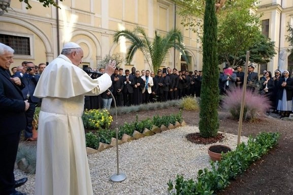 A Szentatya a Pápai Keleti Intézetben találkozott a vatikáni dikasztérium vezetőivel, és átadta üzenetét Leonardo Sandri bíborosnak, a Keleti Egyházak Kongregációja prefektusának. Ezt követően megáldott egy ciprusfát a diákok jelenlétében az intézmény kertjében, majd a nagyteremben találkozott az intézet támogatóival és a jezsuita közösséggel.