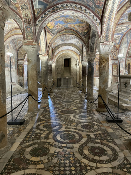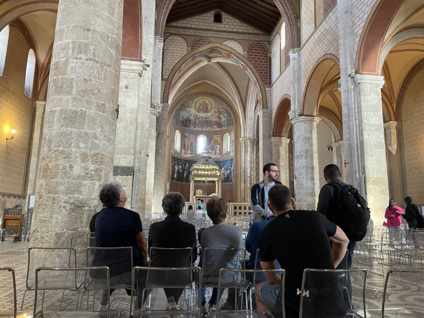Első útjuk Anagniba vezetett. A „pápák városa” néven is ismert ez a település, mivel négy pápa (III. Ince, IV. Sándor, IX. Gergely és VIII. Bonifác) szülőhelye, valamint hosszú ideig pápai székhely és rezidencia volt. A Szűz Máriának szentelt székesegyház román stílusban épült 1071–1105 között, a 13. század közepén gótikus stílusú kiegészítéseket kapott. A belső tér túlnyomórészt gótikus, kiváló állapotban lévő, restaurálatlan padlózata pedig kozmata padló. A kriptában található Anagni Szent Magnus, a város védőszentje és Anagni Szent Szekundina sírja. A kripta minden falát és mennyezetét freskóciklus (a román/bizánci művészet egyik legjobban megőrzött példái Olaszországban) borítja, természetfilozófiát, szenteket, valamint az Ó- és Újszövetség jeleneteit ábrázolja. A székesegyházban található továbbá Becket Szent Tamás ereklyetartója.