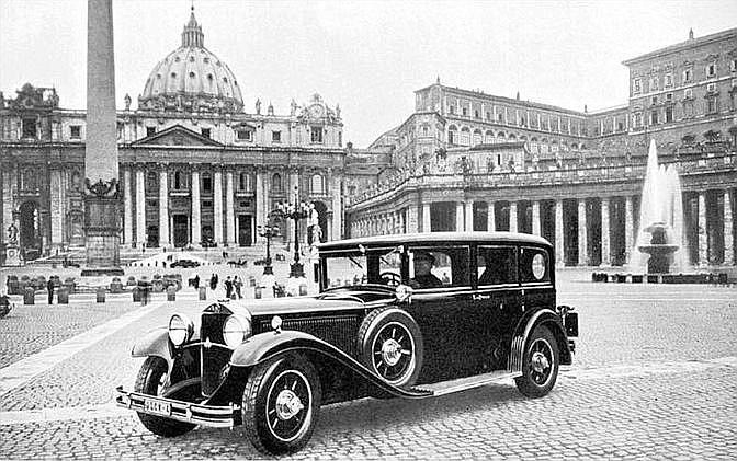 1929-ben mutatták be az első pápai automobilt. Bár akkor már évtizedek óta léteztek automobilok, a pápák mozgástere leszűkült a Vatikánra a Pápai Állam 1870-es összeomlása után. XI. Piusz 1929-ben egy Graham Paige 837-tel indult el első pápai útjára, amikor több mint ötven év után ismét elhagyhatta az egyházfő a Vatikán területét.