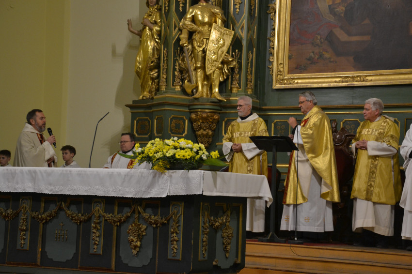 Szkaliczki Örs plébános köszöntötte az ünnepre meghívott Horváth Zoltán protonotárius kanonokot, az Avilai Nagy Szent Teréz-templom plébánosát és a megjelenteket, kiemelten a kismarosi ciszterci nővéreket, köztük Horváth Olga apátnőt.