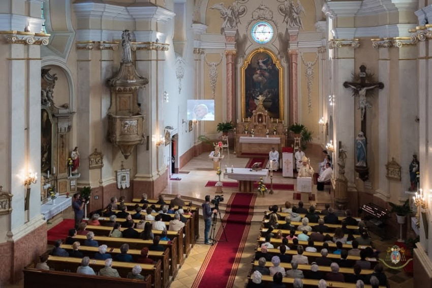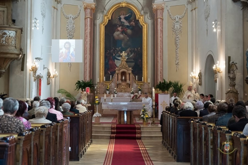 A szentmise kezdetén a püspök Ravasz Csaba plébánossal együtt helyezte el Szent II. János Pál ereklyéjét a Szűzanya mellékoltáránál. A plébános elmondta, a szent pápa halálának és szentté avatásának évfordulója is áprilisban van, ezért választották ezt az időpontot az ereklye elhelyezésére.