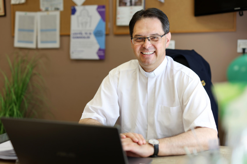 – Isten megadta nekem a papság ajándékát, sőt többet is adott, és negyedszázad elteltével is elmondhatom: boldog pap és boldog családapa vagyok. A huszonöt éves jubileumomra készített szentképemre a feleségemet kértem meg, hogy válasszon idézetet, és ő is Lukács evangéliumából választott, a Magnificatból: „Magasztalja az én lelkem az Urat…” (1,46). Említettem, hogy a feleségem nagy Istenszülő-tisztelő. Ő egyébként pedagógus, angoltanár. A munkájáért állami kitüntetésben is részesült, a Magyar Érdemkereszt bronz fokozatát vehette át 2023-ban. Bármikor érjen is haza az iskolából, azonnal lemegy a kápolnába imádkozni. A napokban Máriapócson jártunk, együtt imádkoztunk és adtunk hálát az elmúlt huszonöt évért. Rengeteget imádkoztam a teológián azért, hogy jó házastársam legyen, a papi szolgálatomban is, ezért elmondhatom: Marianna az én megimádkozott imádságom.