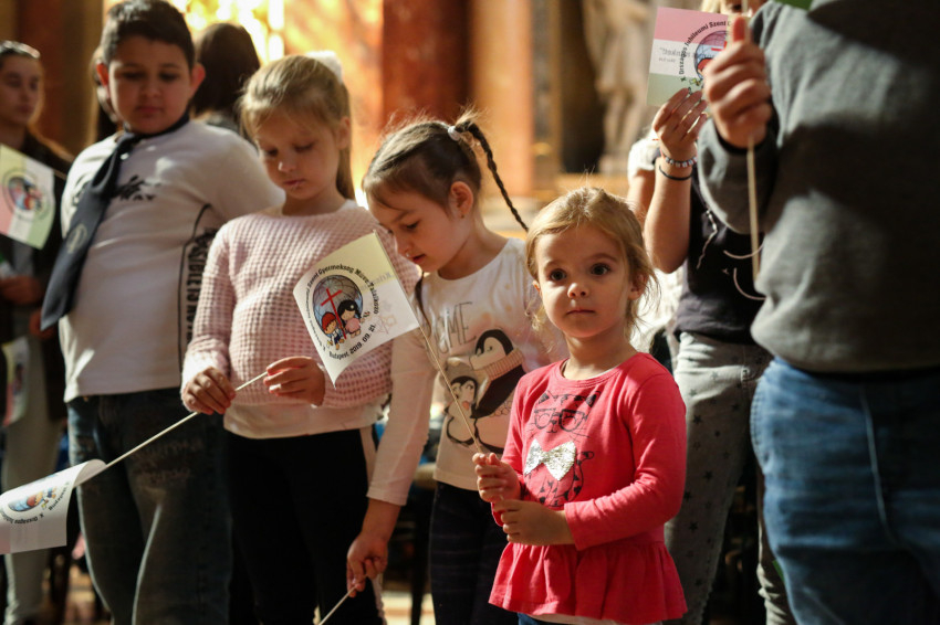 Isten Szentlelke buzdít minket mindennap, hogy hirdessük az Ő irgalmasságát, igazságát, szeretetét az egész világon. A keresztség misszionáriussá tesz minket, akár gyerekek, akár felnőttek vagyunk, ahogyan azt Ferenc pápa mondta. Tudatosulnia kell minden keresztény szívében, hogy Isten igéjét nem titkolhatjuk el a világ elől. Cselekedetünkkel kell tanúságot tennünk Krisztusról, reményt kell adnunk a társadalom perifériáján élőknek, hogy Isten mindenkit szeret, kivétel nélkül. Éljen bennetek elevenen Krisztus szeretete, imádságban, cselekvésben, legyetek örömteli keresztények, legyen ez a kereszténység márkája, így tudunk vonzani másokat – buzdította az apostoli nuncius a gyerekeket és felnőtteket egyaránt.