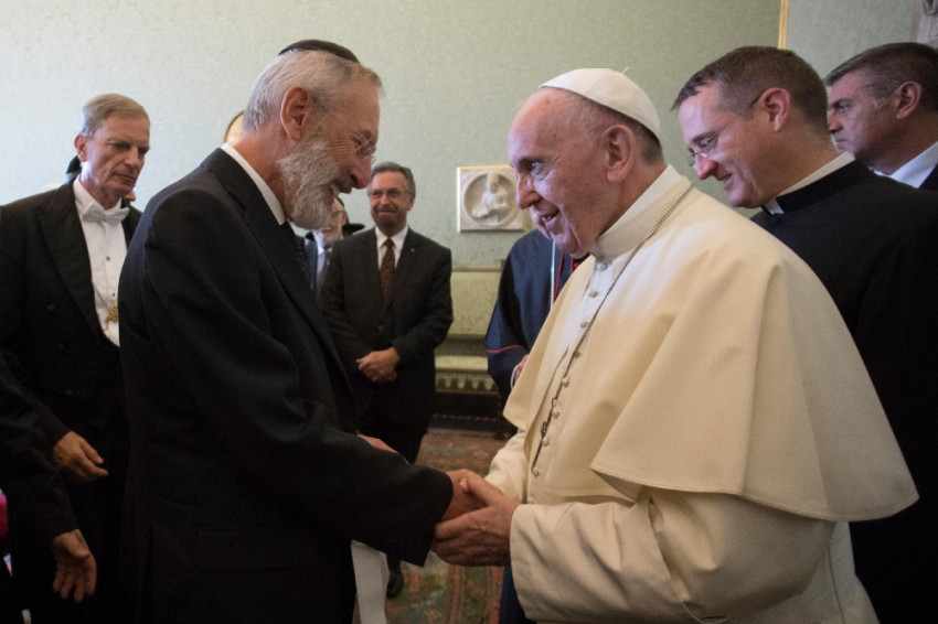 Ferenc pápa hangsúlyozta: a Nostra aetate kezdetű dokumentumból kiindult „közös út” mérlege pozitív. E zsinati dokumentum jelenti a zsidósággal folytatott párbeszéd „magna chartáját”. „Ennek köszönhetően az utóbbi évtizedekben közelebb tudtunk jutni egymáshoz hatékony és gyümölcsöző párbeszédet folytatva. Elmélyítettük kölcsönös ismereteinket, és intenzívebbé tettük a baráti kötelékeket” – hangsúlyozta Ferenc pápa. Ezt emeli ki a Jeruzsálem és Róma között című dokumentum is, amelyet európai, amerikai és izraeli rabbik adtak át a pápának.