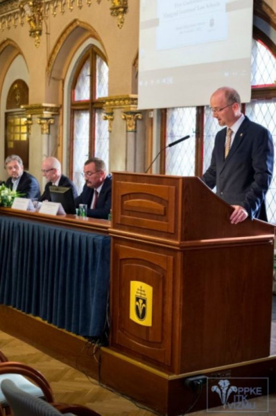A konferencia megnyitóján Tóth Tihamér habilitált egyetemi docens, külügyi dékánhelyettes köszöntötte a résztvevőket. Szabó István professzor, a PPKE JÁK dékánja az 1335-ös királytalálkozó eseményeit idézte fel, emlékeztetve a régió országainak közös történelmi örökségeire. Varga Zs. András professzor, a jogi kar prodékánja a jogállamiság fogalmát járta körül, külön figyelmet szentelve e fogalomnak az EU-s jogban felértékelődő szerepére is. Botos Máté PPKE BTK tanszékvezető, egyetemi docens a V4-országok közös gazdasági örökségét mutatta be, szélesebb történeti távlatokba helyezve a jelenkor közös kihívásait.