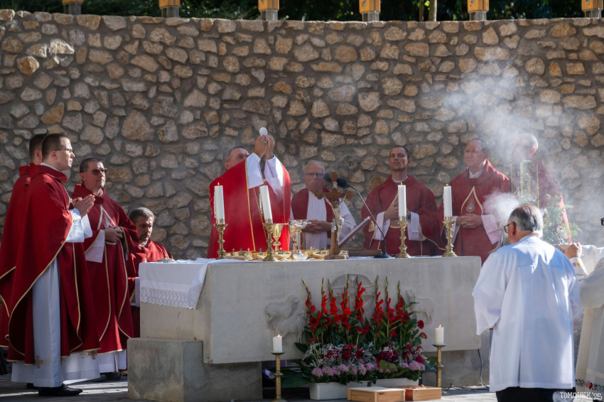 A zarándoklat ünnepi szentmiséjét a szabadtéri oltárnál, a Szent Vér-ereklye közelségében ünnepelték.