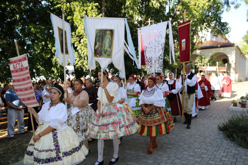 A zarándokok – köztük sok kisgyermekes, babakocsit toló család – idén igazi nyári időjárási körülmények között tették meg a rövid pihenőkkel megszakított, Mohácstól 22, illetve Bátaszékről 11 kilométeres utat a kegyhelyig, ahol Sümegi József diakónus fogadta az érkezőket.