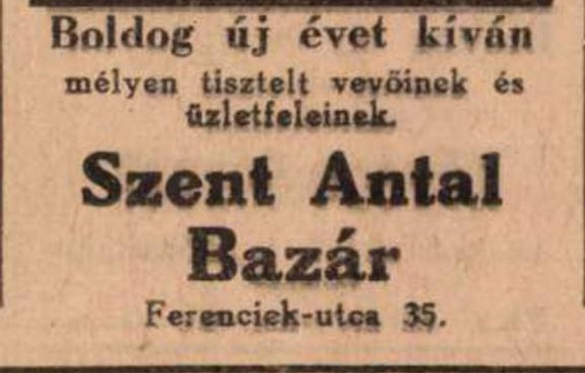 A Szent Antal Bazár újévi üdvözlete, 1943
