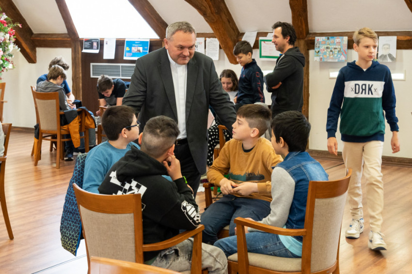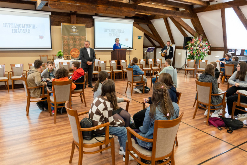 Felföldi László pécsi megyéspüspök is ellátogatott a hittanolimpia döntőjére. A főpásztor rövid beszélgetést követően kifejezete, milyen örömteli élmény volt találkozni a gyerekekkel, majd Isten áldását kérte a számukra.