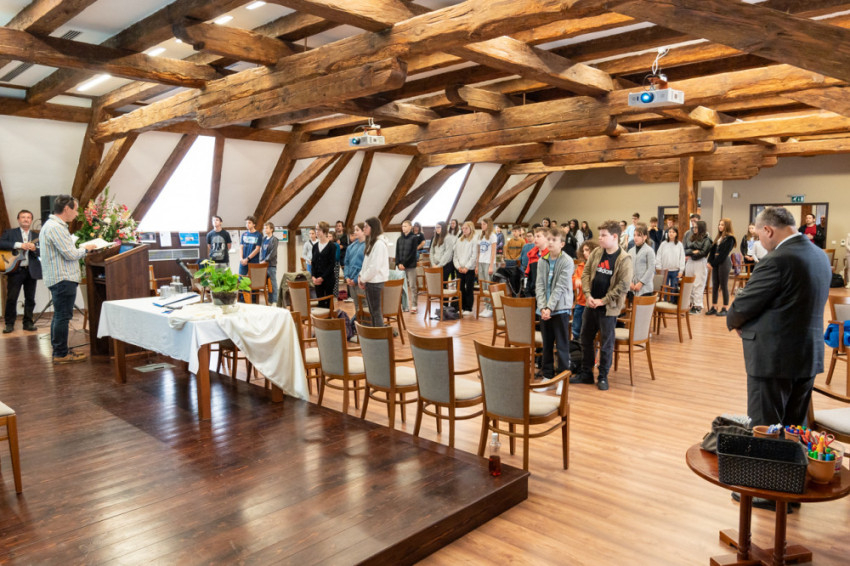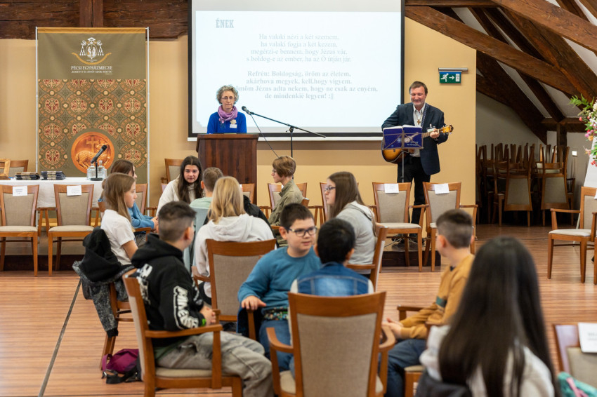 Iváncsits Tamás hitoktató dalaival, zenei szolgálatával és gondolataival élővé tette a tankönyvi leckét, a résztvevők nagy örömére.