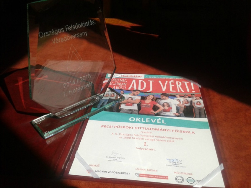 A Pécsi Püspöki Hittudományi Főiskola hatodik éve vesz részt a versenyen. Több dobogós helyezés után idén sikerült a legtöbb új és többszörös véradó hallgatót megszólítania, így érve el az első helyezést.