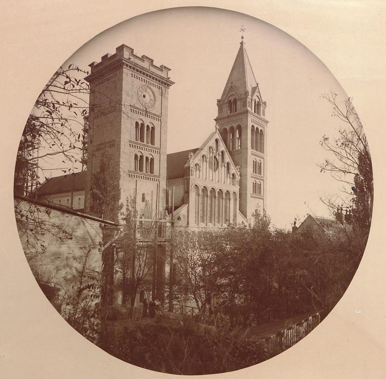 A régi és az új – a pécsi székesegyház az átépítés alatt 1886-ban (Fényképezte: Zelesny Károly)