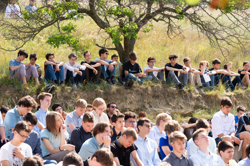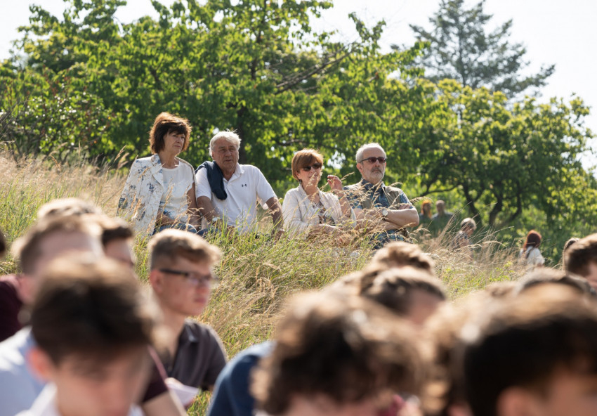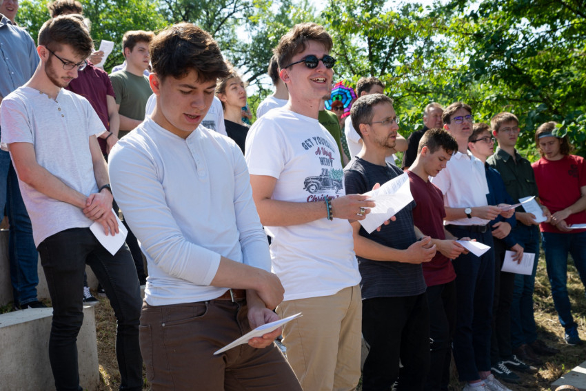 A Hospodár-kertben lévő amfiteátrum lett az igehirdetés helyszíne, a kőtáblák, a fák, bokrok árnyai és a domboldal természetes hepehupái pedig ülőhelyeink. Nem a megszokott úton érkeztünk a találkozásra Isten igéjével. És nem a megszokott úton közelítettük meg aztán az Eucharisztia asztalát.