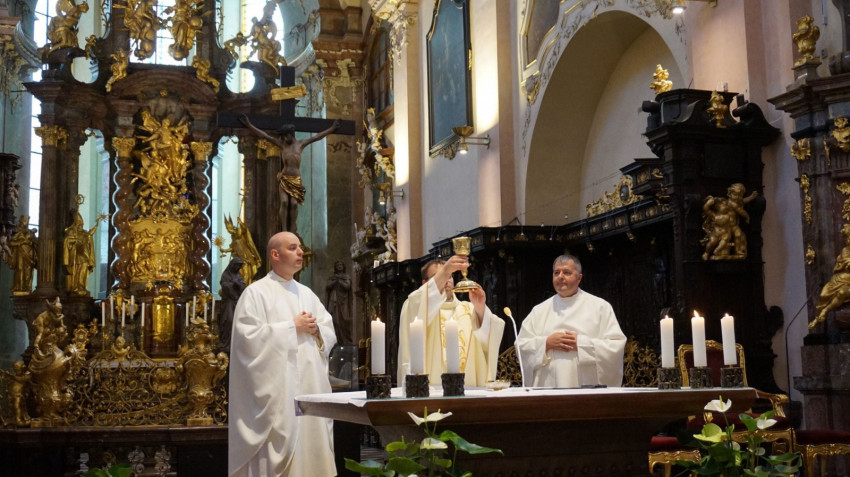 A prágai apátságban Ambrus premontrei atya vezetett bennünket körbe, majd zarándoklatunk fénypontja következett, amikor Szent Norbert atyánk földi maradványainál mutattunk be szentmisét, amelynek főcelebránsa János atya volt, a szentbeszédet pedig Bertalan atya mondta.