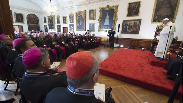 Elsőként nektek, kolumbiai püspököknek kell érintenetek az ország és népe történetének a sebeit! – figyelmeztette a püspököket Ferenc pápa. – Nem vagytok politikusok, hanem pásztorok, ezért szabadsággal hirdessétek a kiengesztelődés és az irgalom igéjét. Kolumbia népe tőletek várja, hogy Isten igazságának felszólításával forduljatok felé. Ő ugyanis váltig ismétli: „Hol a te testvéred?” És erre a kérdése nem lehet lehorgasztott fővel válaszolni.