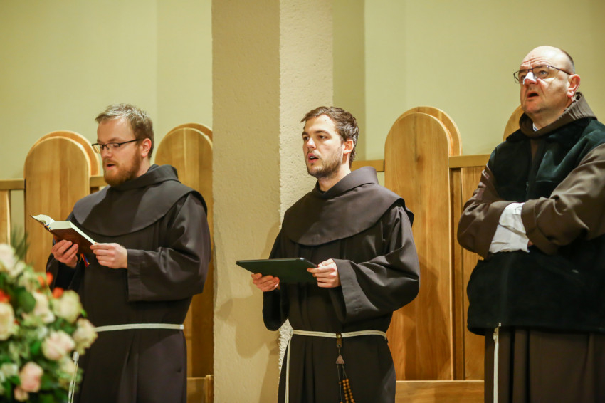 A vesperást Dobszay Benedek OFM, a pasaréti ferences közösség házfőnöke vezette a ferences testvérekkel. A zsolozsma végén hosszan imádkozott az „egyetlen boldogságra törekvő, Istennek szentelt személyekért”, Mária közbenjárását is kérve apostoli életük megújulásáért, hogy a megdicsőült lét tanúságát hirdessék az emberek között.