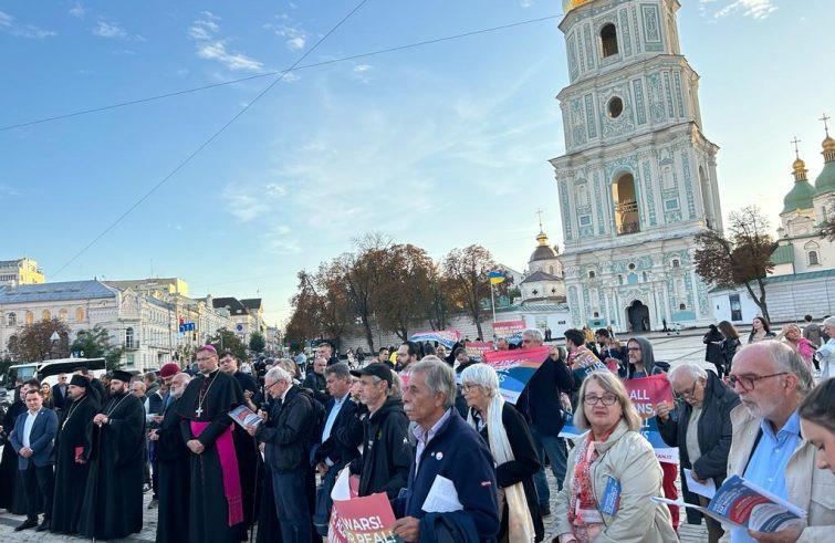 A csoportot Kijev apostoli nunciusa, Visvaldas Kulbokas érsek fogadja, és miután a Maidan téren csendben és imádságban emlékeznek az elhunytakra, Kijev püspöke, Vitalij Krivickij szentmisét mutat be. Kijevben találkozót is tartanak a „helyreállító igazságszolgáltatás” témájában, valamint meglátogatják a nemzeti hősök emlékművét: a belváros egyik utcáján egy hosszú falfelület a háborúban elesett férfi és női katonák fényképeivel.