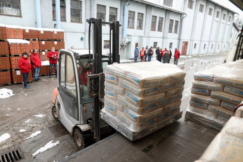 Sziszekbe érve egy külvárosi telephelyen tette le a kamion azt a húsz raklapnyi építőanyagot, amelyet már az újjáépítésben tudnak felhasználni az itt élők. A fuvaroztató cég is csatlakozott az adományozókhoz: ingyen vállalták a szállítást. Ezután a kisbuszokkal célba vettük a helyi karitász raktárát, ahol a többi adományt száz fiatal rakodta le olyan gyorsasággal, hogy szinte követni se tudtuk. Látszott, hogy nem első nap csinálják ezt, a mosóporokat például sorba rendeződve pakolták le az arra kialakított helyre.