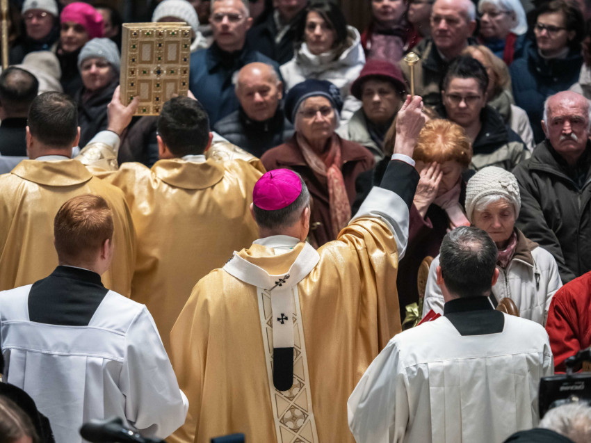 Az evangéliumból elhangzó részlet után (Jn 14,6) a főpásztor részletet olvasott fel a 2025-ös szentévet meghirdető, Spes non confundit – A remény nem csal meg című pápai bullából: „(...) Legyen a jubileumi szentév mindenki számára a valódi, személyes találkozás pillanata az Úr Jézussal, üdvösségünk »ajtajával« (vö. Jn 10,7.9), akivel kapcsolatban az Egyháznak az a feladata, hogy mindig, mindenütt és mindenkinek hirdesse, mint a mi »reménységünket« (1 Tim 1,1). (...) Gyakran találkozunk olyan emberekkel, akik csüggedtek, pesszimisták és cinikusak a jövőt illetően, mintha semmi sem hozhatna számukra boldogságot. Legyen a jubileum mindannyiunk számára lehetőség arra, hogy megújuljunk a reményben.”