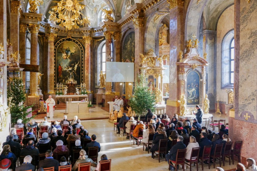 A Barátok templomában gyülekeztek a hívek december 29-én, vasárnap reggel a szentmise első állomásához, amely során a dicsőítő imádságot követően Marton Zsolt püspök megnyitotta a szentévet a Váci Egyházmegyében.