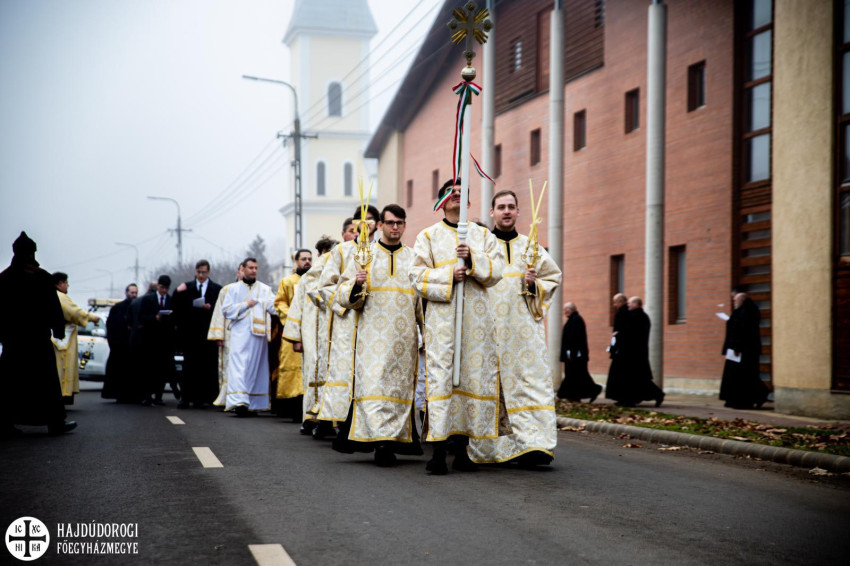 A vecsernye szertartása során körmenetben vitték a Nagy Szent Bazil Görögkatolikus Általános Iskolából azt a Szentháromság-ikont, amelyet minden hétvégén gyalogos zarándoklattal visznek majd át az adott egyházközség tagjai egy szomszédos parókiára. Az első állomás január 4-én Hajdúnánás lesz.
