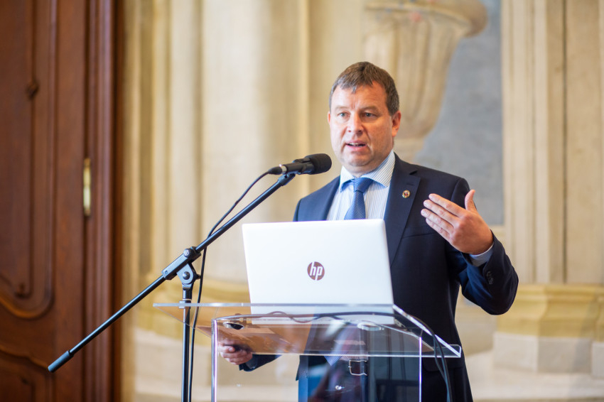 „Úgy tűnik, az emberiség életében felmerült globális problémákra nem találunk reális megoldásokat. Napjainkban legtöbbször az alternatív valósággal foglalkozunk, mert a valóság túl bonyolult. Ha így gondolkodunk, akkor csak látszatmegoldásokra juthatunk” – kezdte Ábrándok bűvöletében – őszintén a fenntarthatóságról című előadását Gelencsér András levegőkémikus, a Pannon Egyetem rektora.