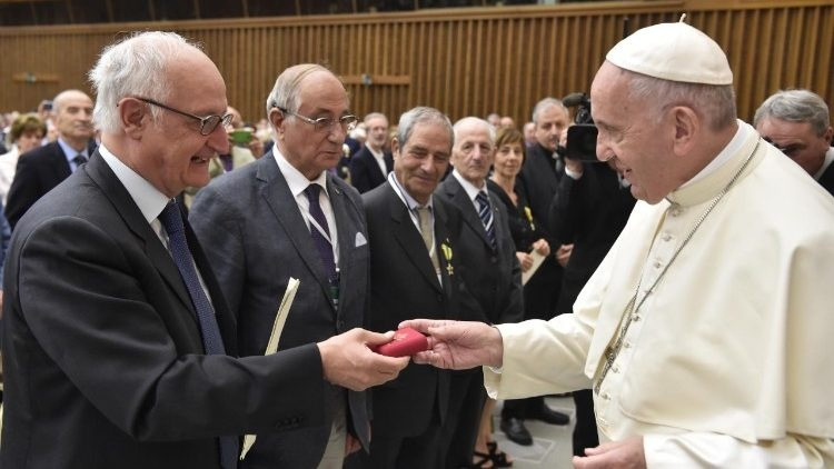 Ferenc pápa emlékeztetett, hogy kitüntetésük nagyobb felelősséget ró rájuk, arra kötelezi őket, hogy továbbra is állhatatosan és fáradhatatlanul szenteljék magukat a kötelességüknek. Utalt a pápa az Egyház szociális tanítására is, így XIII. Leó pápa 1891-ben kiadott Rerum novarum enciklikájára, mely már akkor a munkát helyezte a társadalmi élet középpontjába.
