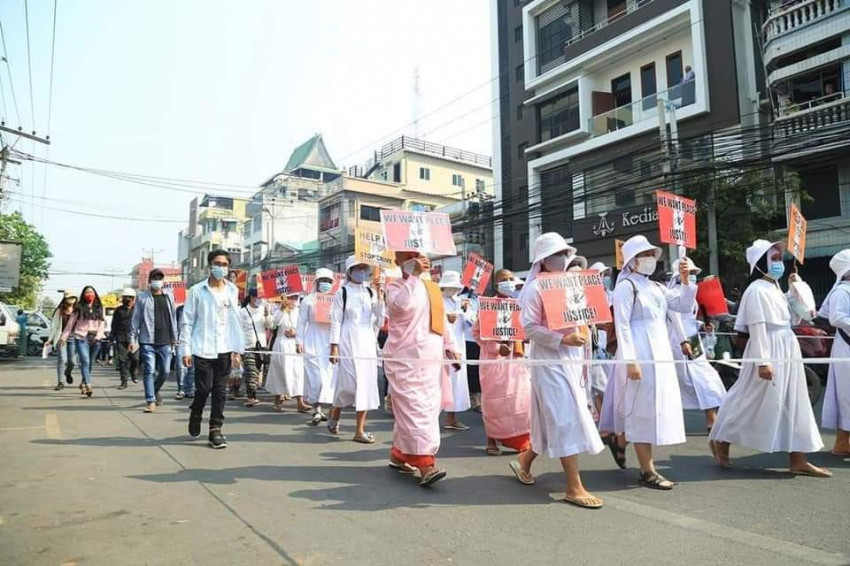 Február 28-án, nagyböjt második vasárnapján Charles Maung Bo bíboros, ranguni érsek az ország társadalmi-politikai válsághelyzetéről szólva kiemelte: „A színeváltozás evangéliuma nagyon aktuális, visszatükrözi az elmúlt napok eseményeit. Milyen színeváltozást szeretnénk megtalálni ma Mianmarban? Ha megtaláljuk, az egész zűrzavar, az egész sötétség, az egész gyűlölet elmúlik, és országunk, az Aranyföldnek is nevezett szép ország színében átváltozik, a béke és a bőség földjévé alakul át.”