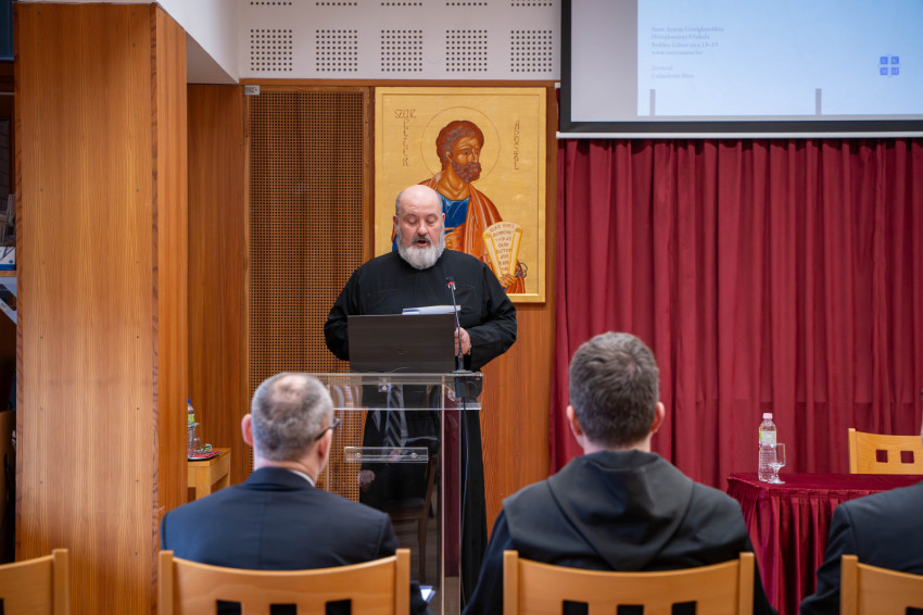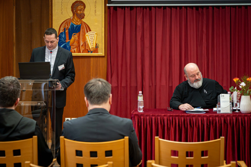 Galambvári Péter délelőtti szekcióban elhangzott előadásának címe Az exarchátus mint részegyház eredete és mai szabályozása volt.