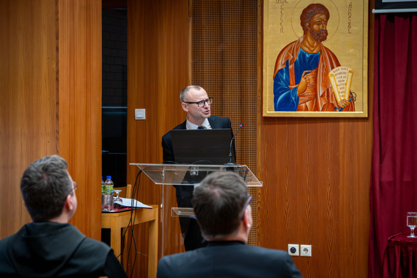 Ujházi Loránd, a Pázmány Péter Katolikus Egyetem (PPKE) Kánonjogi Posztgraduális Intézet tanszékvezető egyetemi tanára, a Nemzeti Közszolgálati Egyetem intézetvezetője, tudományos főmunkatársa előadásának címe A tábori püspökségtől a katonai ordinariátusig: hasonlóságok és eltérések volt.