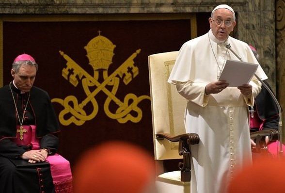 A pápa beszédében abból a képből indult ki, hogy az egyház Jézus Krisztus misztikus teste. Jó a Római Kúriára mint az egyház kis modelljére gondolni, vagyis egy „testre”, amely komolyan és nap mint nap igyekszik egyre élőbb, egészségesebb, harmonikusabb és egységesebb lenni önmagában és Krisztussal – állapította meg. A kúria egy dinamikus test, amely nem élhet önmaga táplálása és gondozása nélkül. Ha a kúria, ahogy az egyház is, nem áll élő, személyes, hiteles és szilárd kapcsolatban Krisztussal, akkor olyan hajtássá válik, amely elszárad és lassanként elhal, amit messzire elhajítanak. A kúria arra kapott meghívást, hogy mindig egyre jobb legyen, növekedjen a szeretetközösségben, az életszentségben és a bölcsességben, hogy teljességében meg tudja valósítani küldetését. Mint minden emberi test, a kúria is ki van téve betegségeknek, a működés zavarainak, bajoknak. Ezért Ferenc pápa beszédében felsorolt a lehetséges kúriai „betegségek” közül néhányat. Olyan hibák és kísértések ezek, amelyek meggyengítik az Úrért végzett szolgálatunkat.