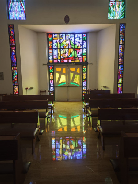 A kápolna szentélyét a ház egykori híres lakója, Prokop Péter kalocsai születésű és emigrációban élt pap, festő és író készítette, aki Rómában fejezte be képzőművészeti tanulmányait az 1950-es években, majd haláláig itt tevékenykedett. Az ő alkotásai díszítik a ház közösségi tereinek és szobáinak falait is.