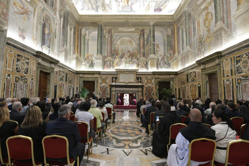 Az ágostonos misszionáriusok a világ számos részén adták életüket az evangéliumért. A Szentatya örömmel állapította meg, hogy a múlt tanúságtételeiből merítve ma is készek a misszióra a II. vatikáni zsinat, illetve a mai kor kihívásai tükrében. Arra buzdította az Ágoston-rendieket, hogy óvakodjanak az önmagukra hivatkozástól, legyenek élő közösség, amelyik az élő Krisztussal akar zarándokolni; és boldogan szolgálják a Magasságost az alázat szellemében.