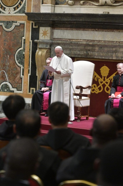 A Lélek az ad gentes misszió szelét is fújja az Egyház vitorlájába – folytatta beszédét a pápa. – Ma olyan korban élünk, amikor ezt a küldetésünket meg kell újítanunk, hogy növekedjünk, hűek maradjunk a feltámadt Úr által ránk bízott feladathoz.