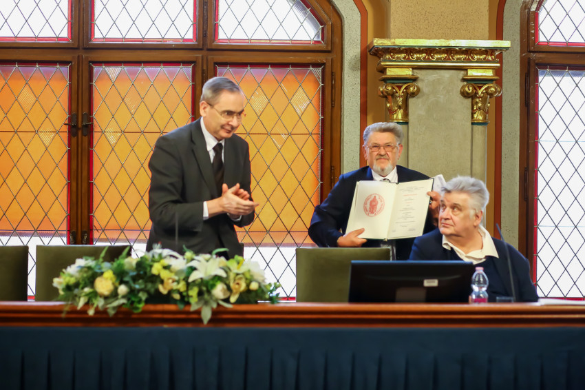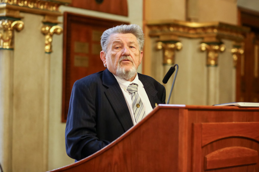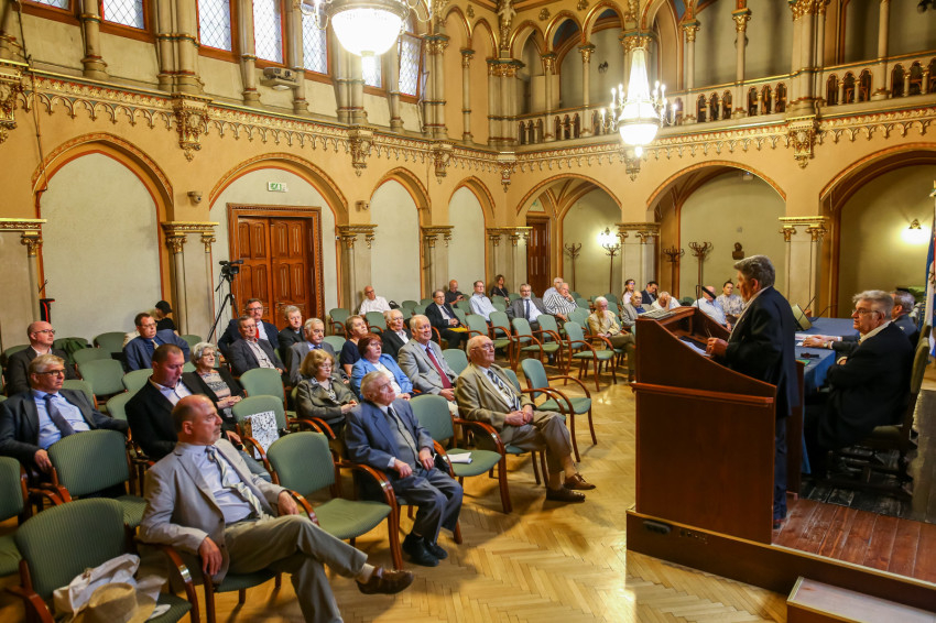 Varga Károly szociológius székfoglaló előadása betegség miatt elmaradt, de méltatását a jelenlevők meghallgatták Tringer László tolmácsolásában.