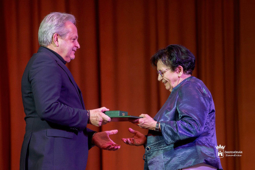 A színvonalas műsorszámok között újabb meglepetés következett. A jótékonysági est főszervezője, Prekrit Judit, hosszú évtizedek áldozatos munkája elismeréseként Magyar Arany Érdemkereszt kitüntetést vehetett át. Az elismerést Vargha Tamás, a Honvédelmi Minisztérium miniszterhelyettese, Székesfehérvár országgyűlési képviselője adta át.