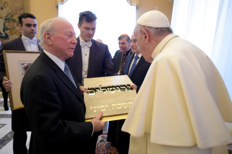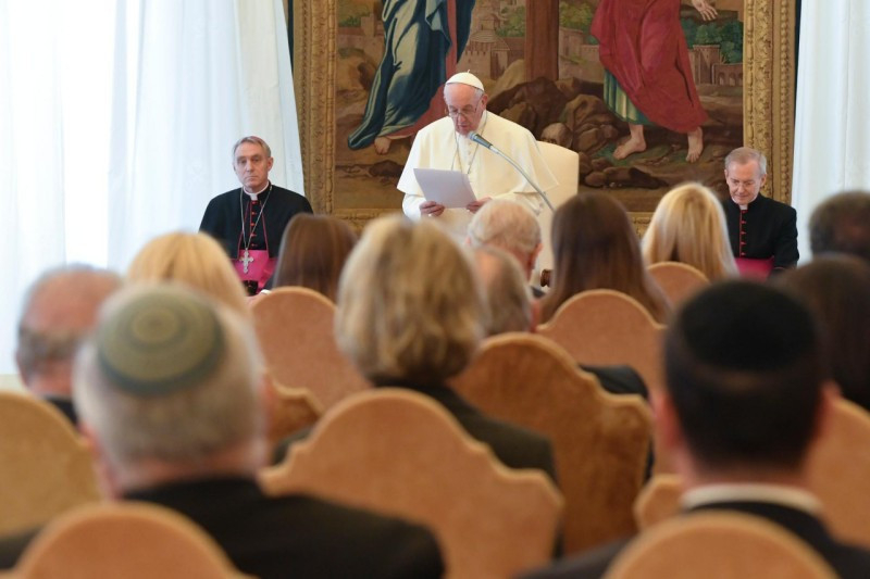 A pápa emlékeztetett a II. vatikáni zsinat Nostra aetate kezdetű nyilatkozatára, amely hangsúlyozza: egyre inkább föl kell fedeznünk és mindenki szolgálatába kell állítanunk a zsidók és keresztények közös gazdag lelki örökségét. Ma ez a fő feladatunk: nem elhatárolódni és kizárni, hanem közeledni és befogadni; nem erődemonstráló megoldásokat keresni, hanem a közeledés folyamatait elindítani. Ha mi nem tesszük meg, akik hiszünk Őbenne, aki a mennyekben megemlékezett rólunk és szívén viselte gyengeségeinket, akkor ki fogja megtenni? A pápa fölidézte a Kivonulás könyvének gondolatait: „Isten meghallotta panaszukat, és Isten megemlékezett az Ábrahámmal, Izsákkal és Jákobbal kötött szövetségről. Jóakaratúan tekintett le Izrael fiaira, és felismerte…” (Kiv 2,24–25) Mi is emlékezzünk a múltra, és viseljük szívünkön a szenvedők helyzetét. Így műveljük a testvériség földjét. A pápa a Simon Wiesenthal Központ küldöttségétől egy békésebb világ megteremtésének kívánságával búcsúzott: „Shalom!” Vagyis: „Békesség!”