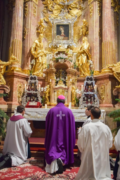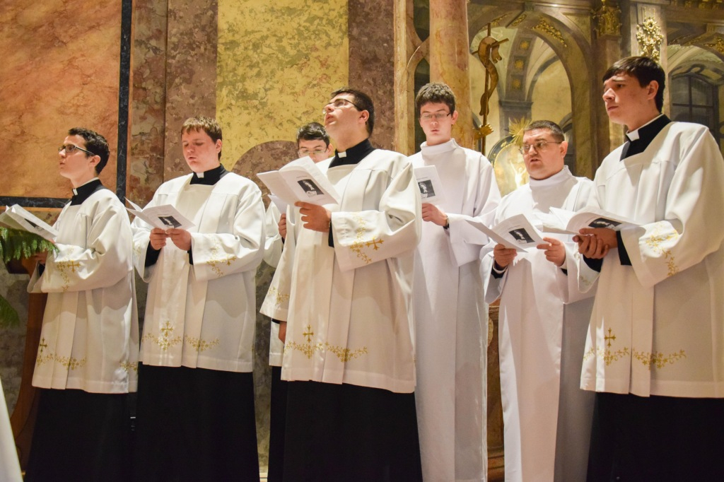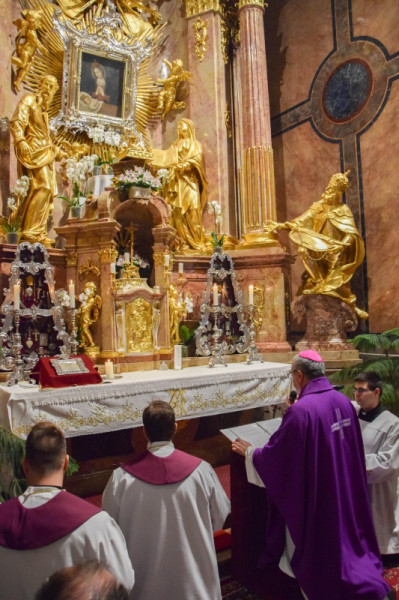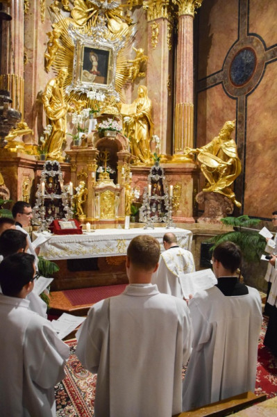 A szentmisét követően a győri Brenner János Hittudományi Főiskola és Papnevelő Intézet elöljárói és növendékei köszöntötték a Szűzanyát a Székesegyházban található kegyoltár előtt.
