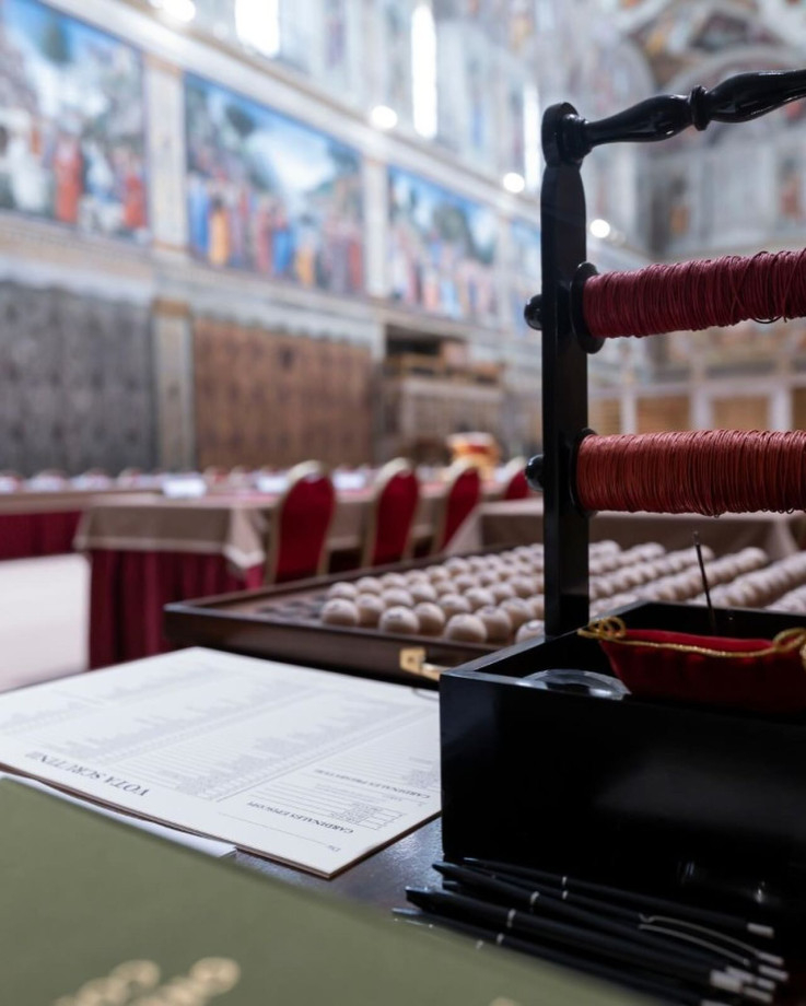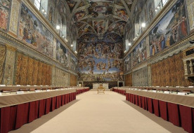 A Vatikáni Média képein látható, hogy a többek között Michelangelo festményeivel díszített kápolna immár előkészítve várja a bíborosokat, akik ma, május 7-én délután itt ülnek össze, hogy titkos szavazás útján megválasszák az új római pápát.
